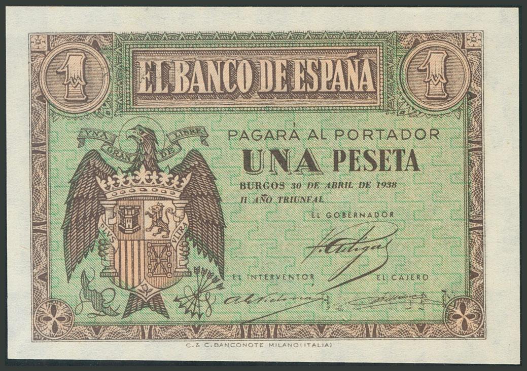 1 Peseta. 30 de Abril de 1938. Serie M. (Edifil 2017: 428a). SC.