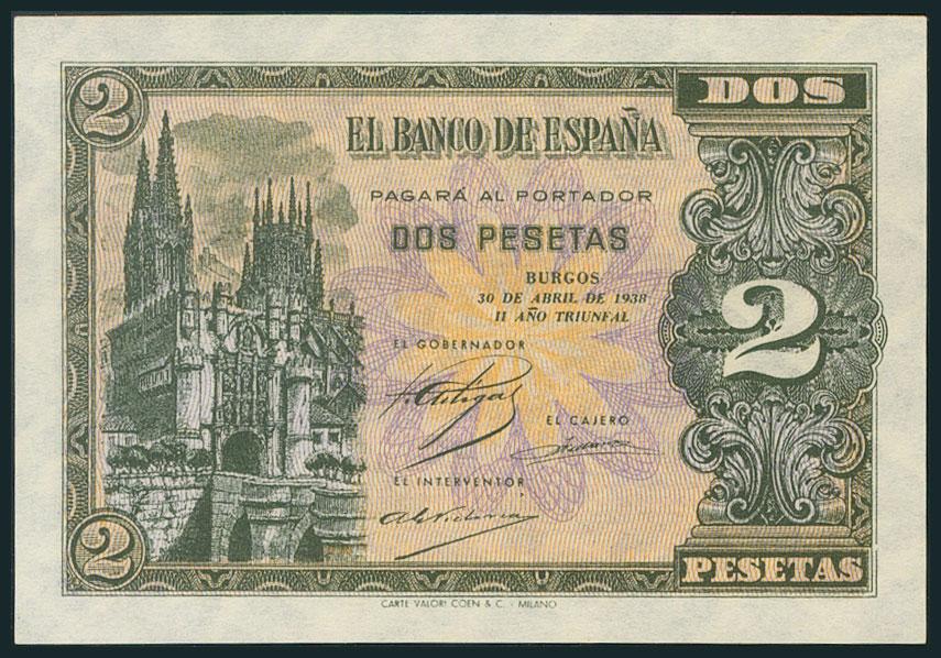 2 Pesetas. 30 de Abril de 1938. Serie E. (Edifil 2017: 429a). Apresto original. SC.