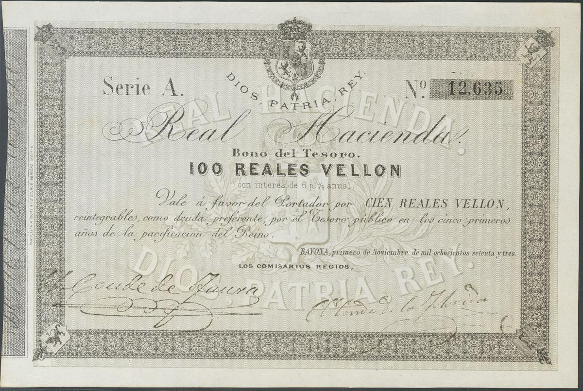 100 Reales. 1 de Noviembre de 1873. Serie A. (Edifil 2017: 210). SC-.