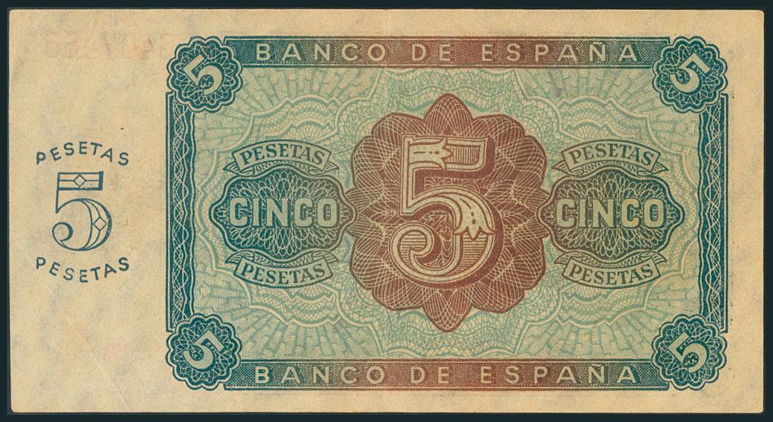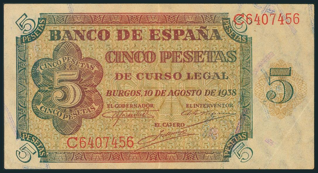 5 Pesetas. 10 de Agosto de 1938. Serie C. (Edifil 2017: 435a). EBC.