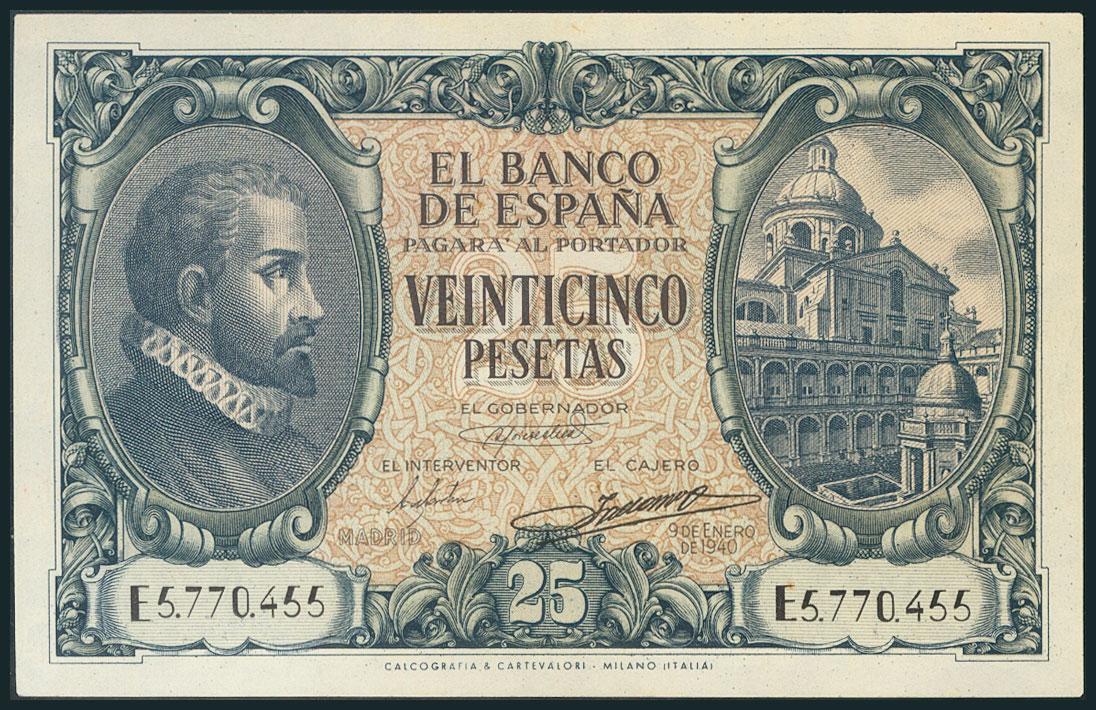 25 Pesetas. 9 de Enero de 1940. Serie E. (Edifil 2017: 436a). Apresto original. EBC+.