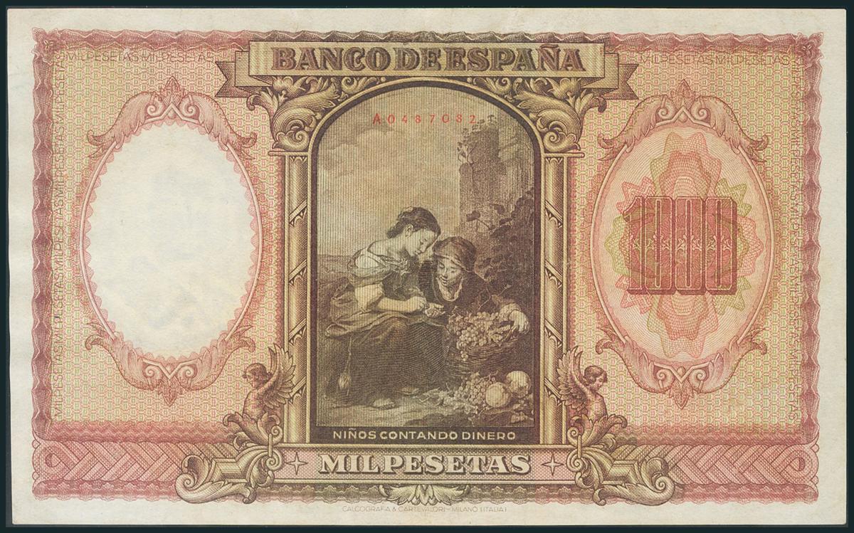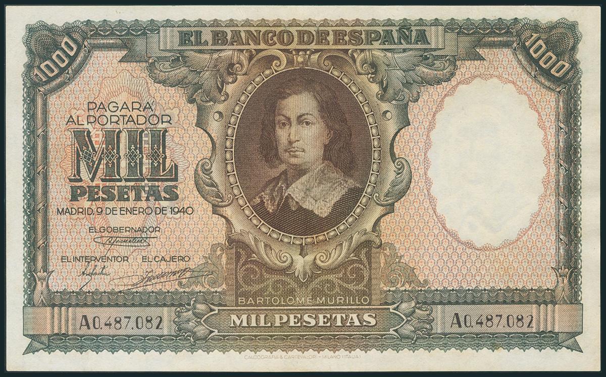 1000 Pesetas. 9 de Enero de 1940. Serie A. (Edifil 2017: 440). Dos puntitos de grapa. EBC-.