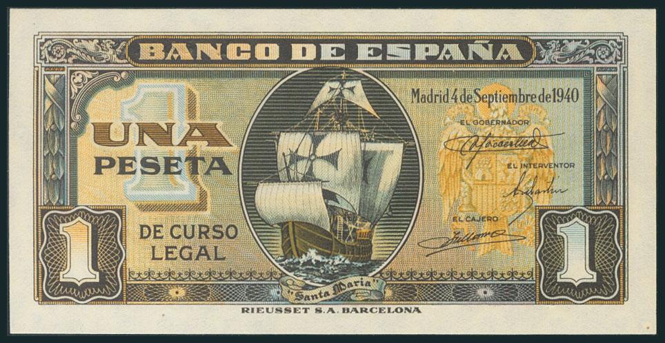 1 Peseta. 4 de Septiembre de 1940. Serie I, última serie emitida. (Edifil 2017: 442a). SC-.