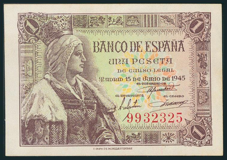 1 Peseta. 15 de Junio de 1945. Sin serie. (Edifil 2017: 448). Apresto original. SC-.