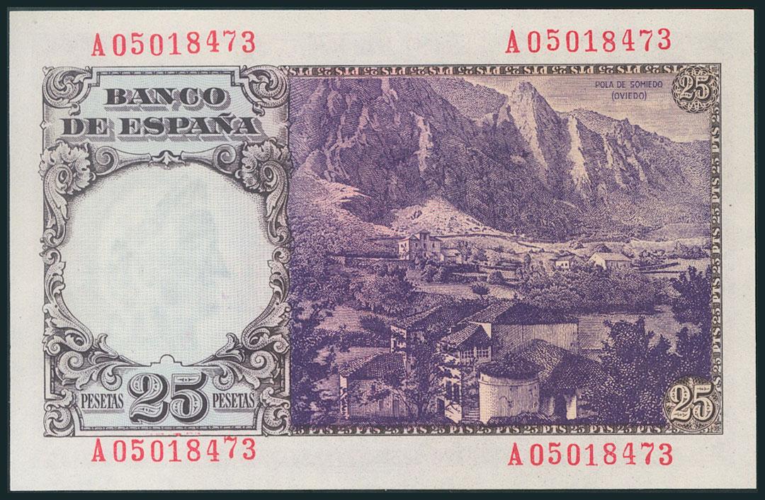 25 Pesetas. 19 de Febrero de 1946. Serie A. (Edifil 2017: 450a). Apresto original. SC.