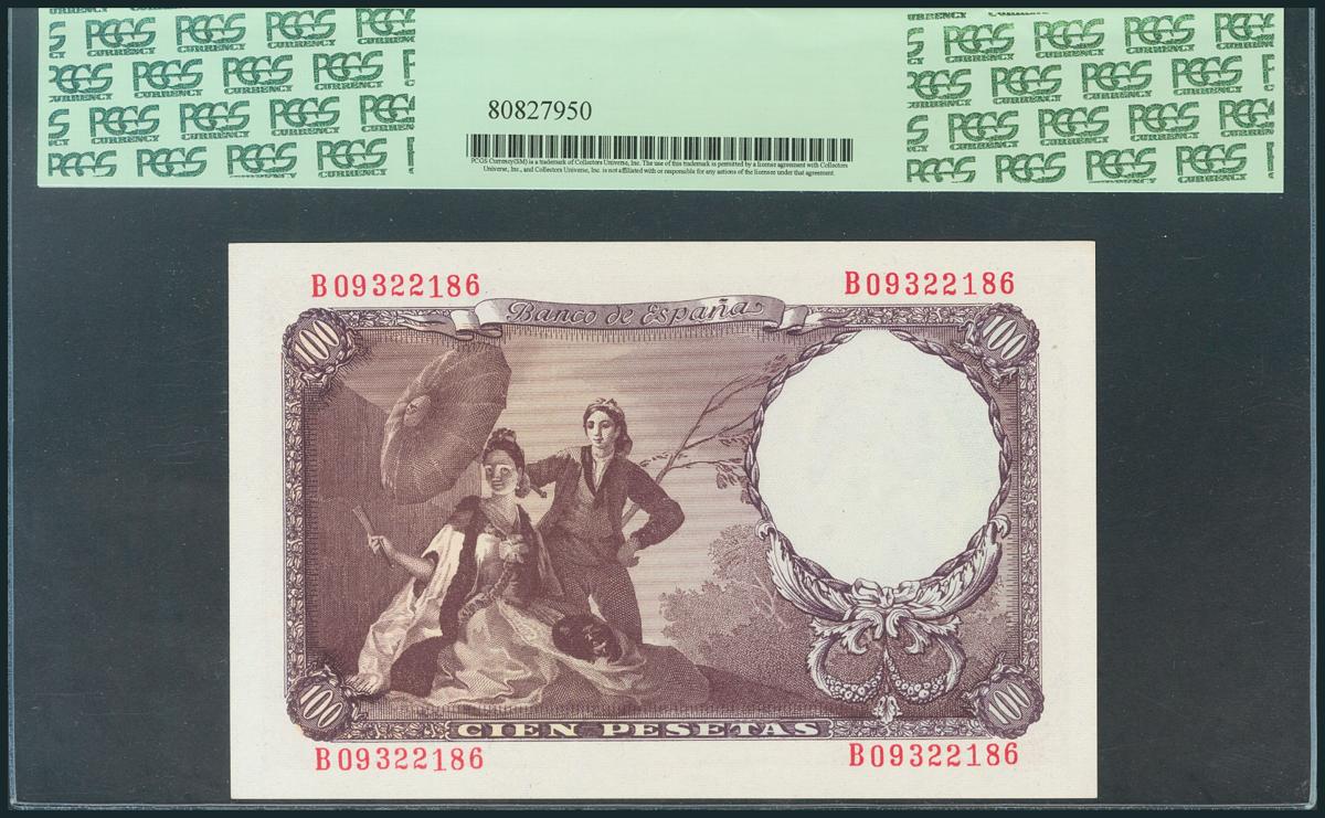 100 Pesetas. 19 de Febrero de 1946. Serie B. (Edifil 2017: 451b). Encapsulado por PCGS65PPQ. SC.