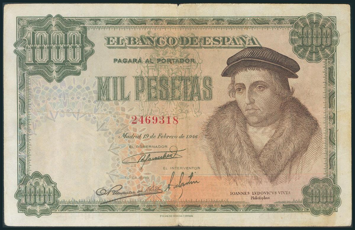 1000 Pesetas. 19 de Febrero de 1946. Sin serie. (Edifil 2017: 453). BC+.