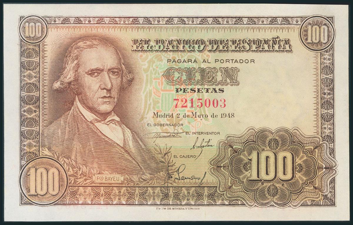 100 Pesetas. 2 de Mayo de 1948. Sin serie. (Edifil 2017: 456). Invisible doblez vertical. EBC+.