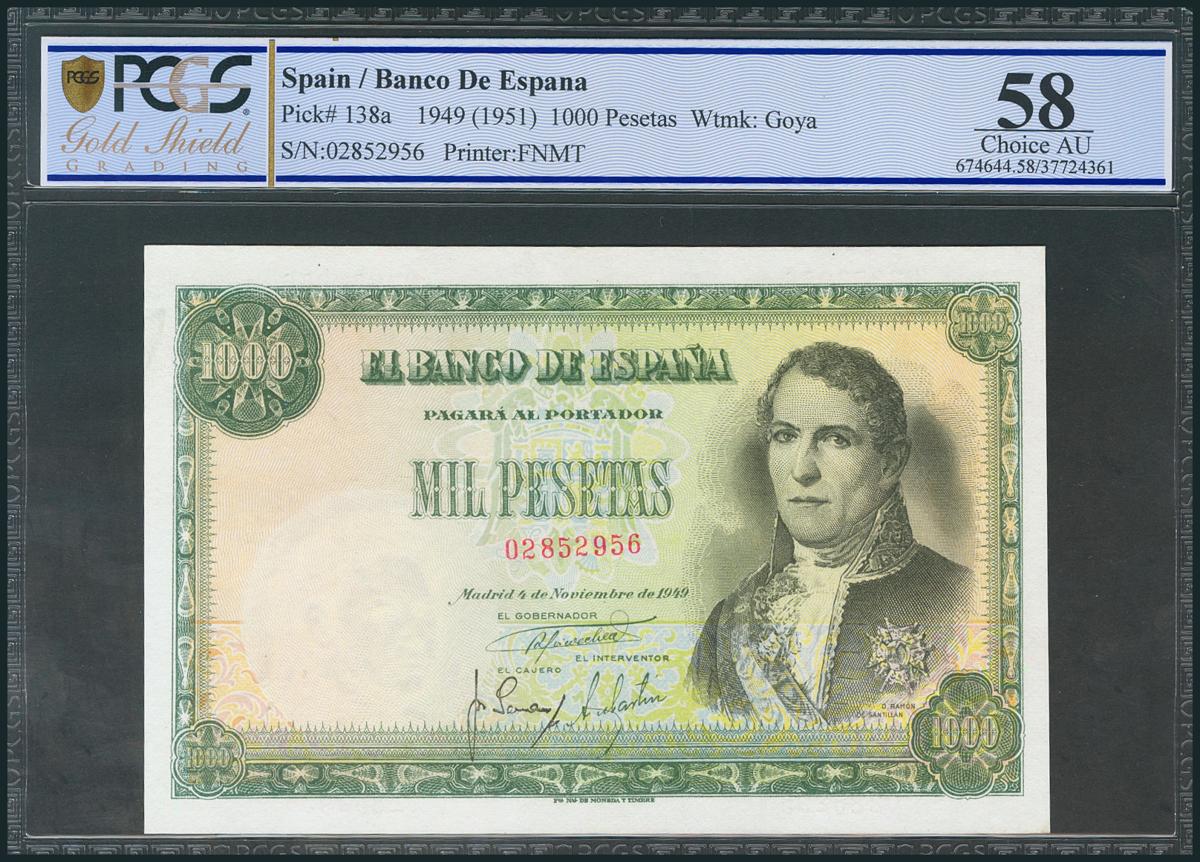 1000 Pesetas. 4 de Noviembre de 1949. Sin serie. (Edifil 2017: 458). Encapsulado PCGS58. EBC+.