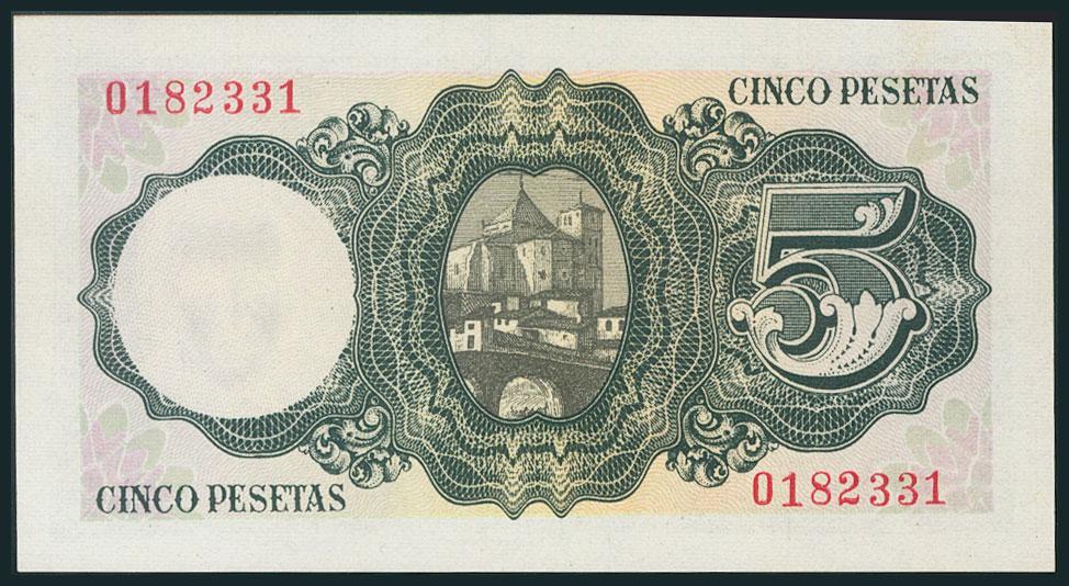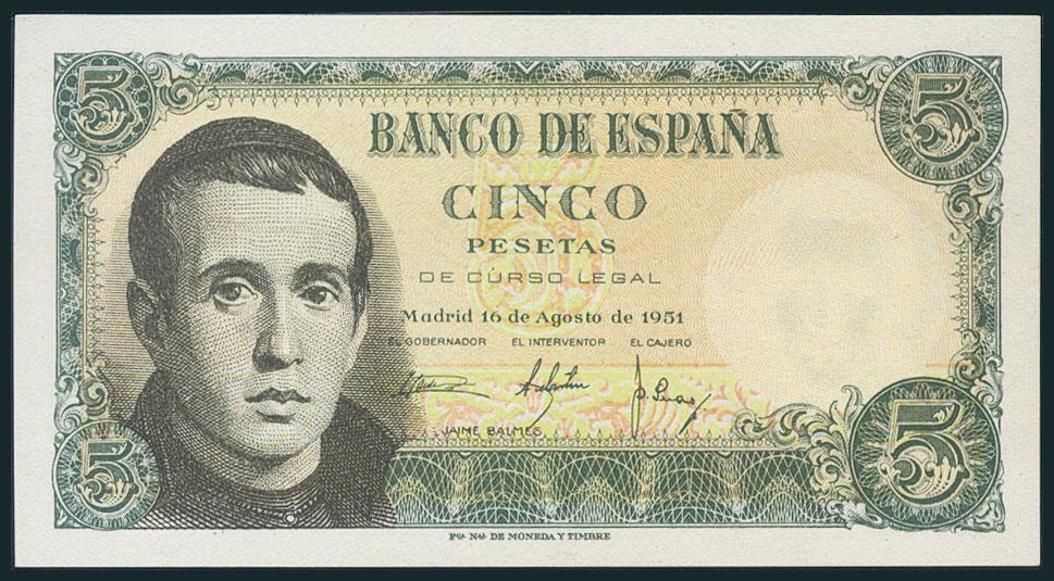 5 Pesetas. 16 de Agosto de 1951. Sin serie. (Edifil 2017: 459). SC.