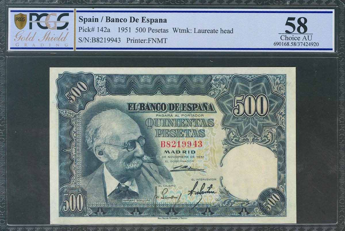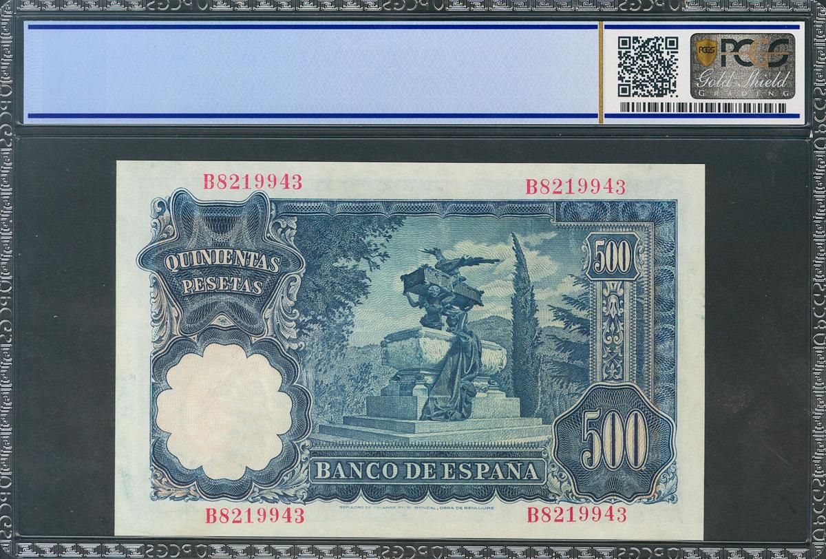 500 Pesetas. 15 de Noviembre de 1951. Serie B. (Edifil 2017: 460a, Pick: 142a). Encapsulado PCGS58. EBC+.