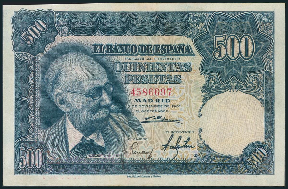 500 Pesetas. 15 de Noviembre de 1951. Sin serie. (Edifil 2017: 460). EBC.