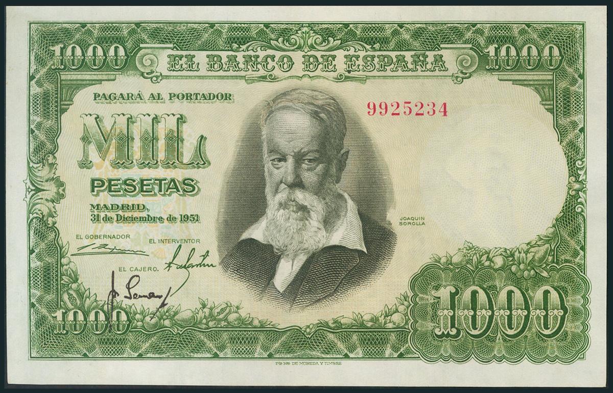 1000 Pesetas. 31 de Diciembre de 1951. Sin serie. (Edifil 2017: 463). SC-.