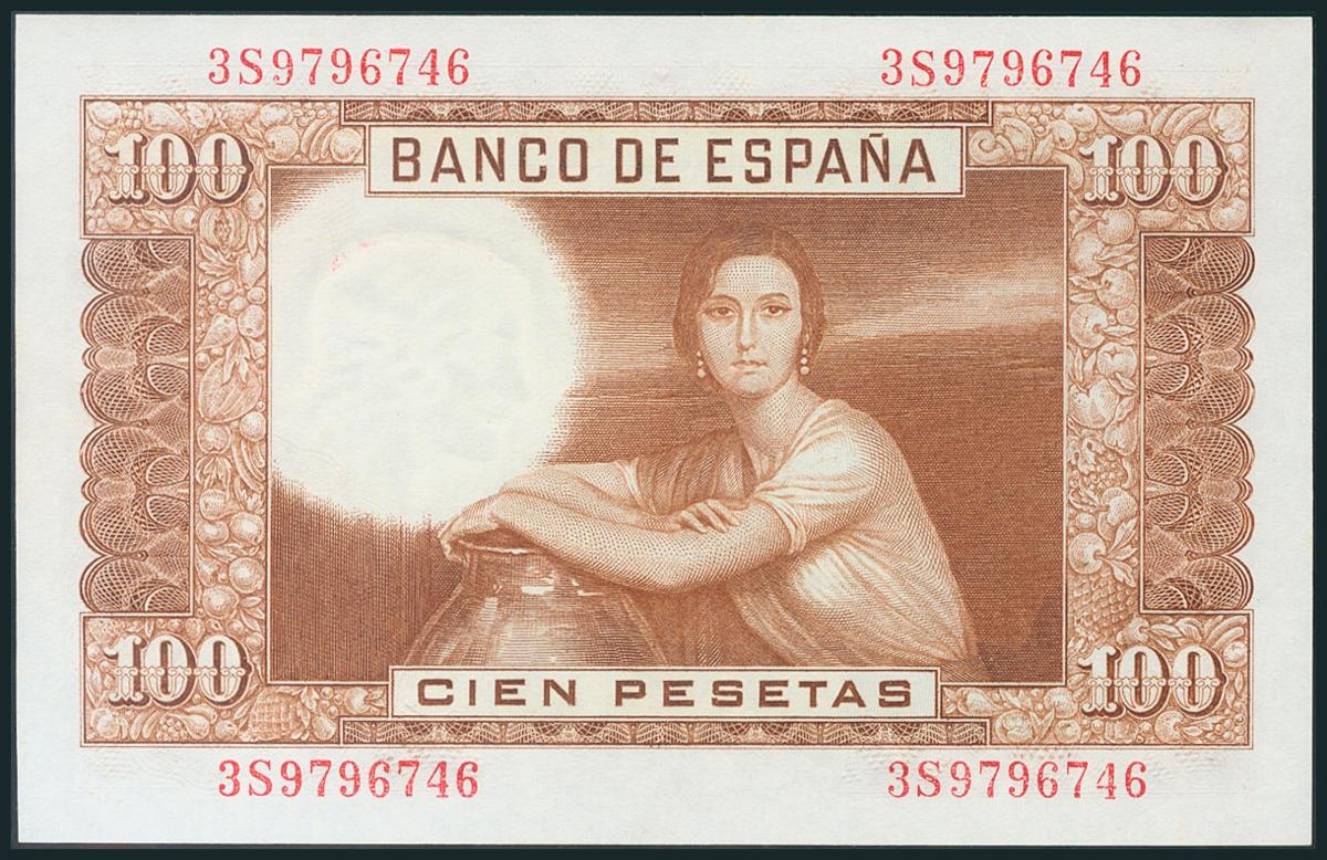 100 Pesetas. 7 de Abril de 1953. Serie 3S. (Edifil 2017: 464c). Apresto original. SC-.