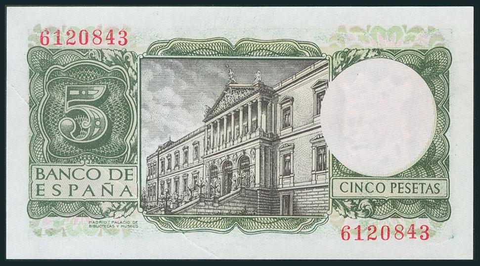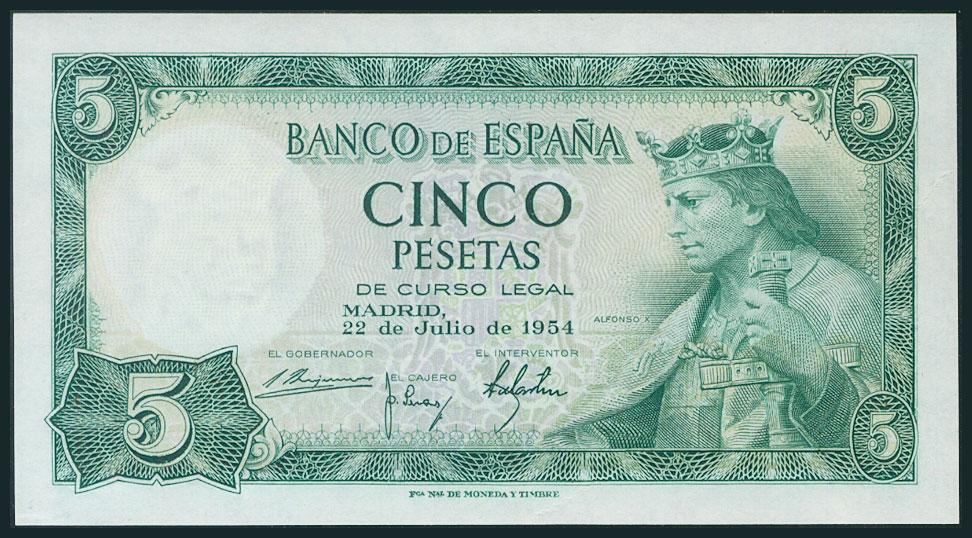 5 Pesetas. 22 de Julio de 1954. Sin serie. (Edifil 2017: 466). Apresto orignal y pliegue original del papel. SC-.