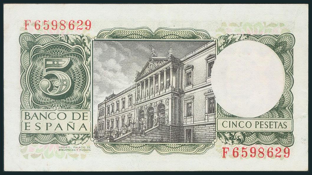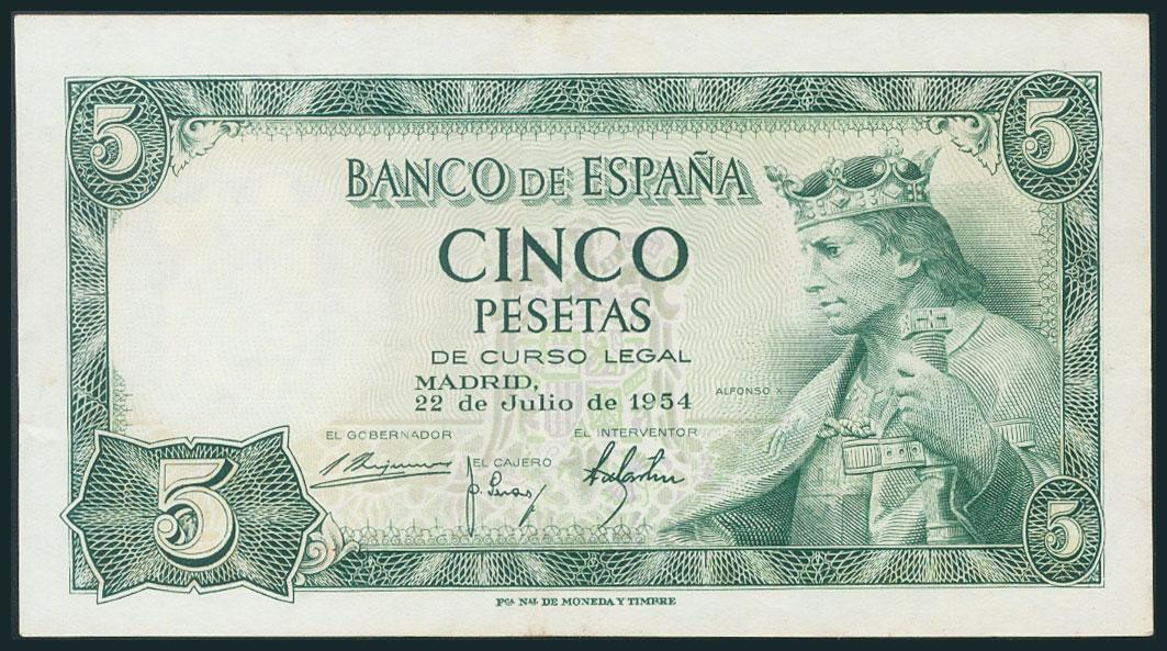 5 Pesetas. 22 de Julio de 1954. Serie F. (Edifil 2017: 466a). EBC.