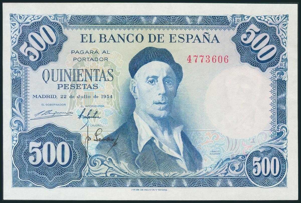 500 Pesetas. 22 de Julio de 1954. Sin serie. (Edifil 2017: 468). SC-.