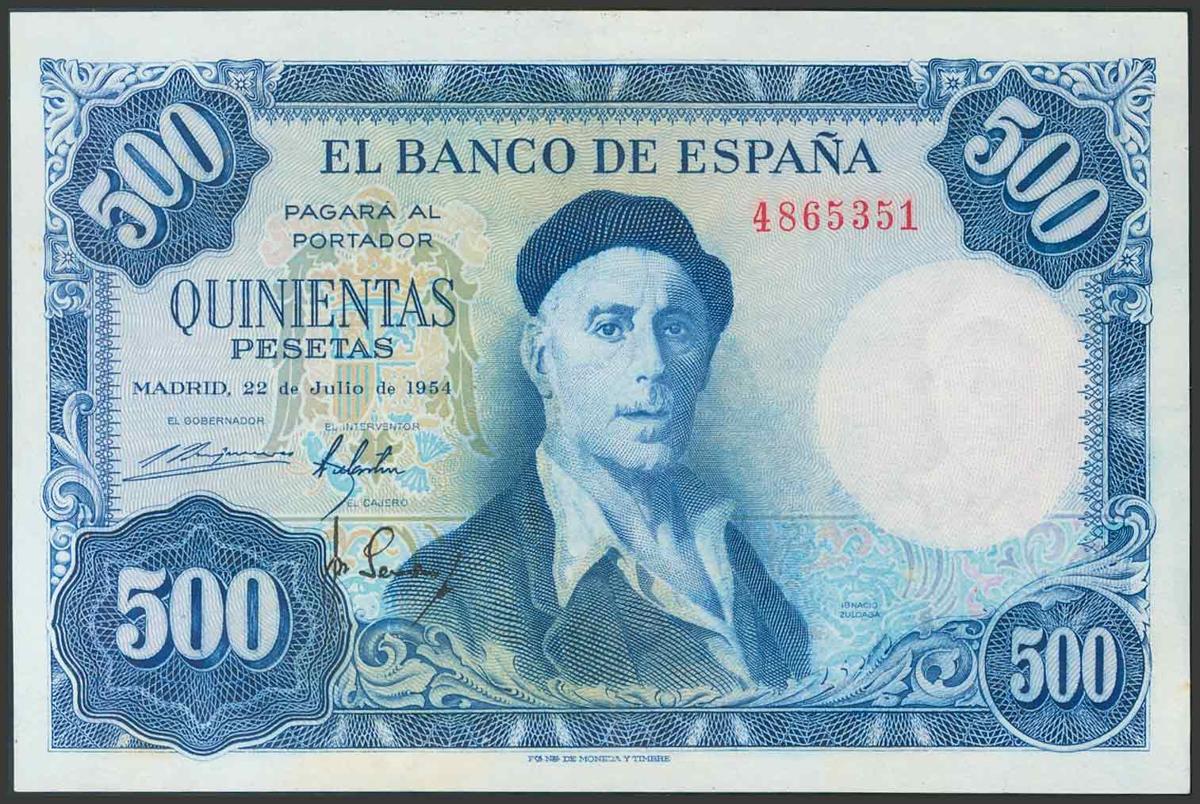 500 Pesetas. 22 de Julio de 1954. Sin serie. Invisible doblez vertical. (Edifil 2017: 468). Inusual. EBC+.