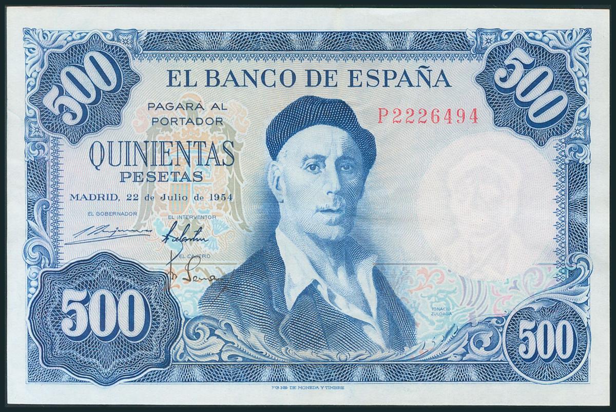 500 Pesetas. 22 de Julio de 1954. Serie P. (Edifil 2017: 468b). Apresto original. EBC.