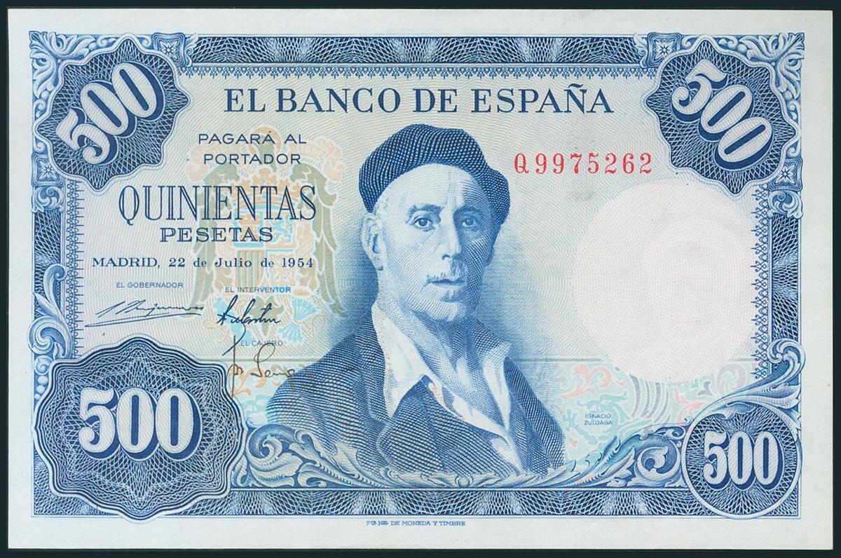 500 Pesetas. 22 de Julio de 1954. Serie Q. (Edifil 2017: 468b). Apresto original. SC.
