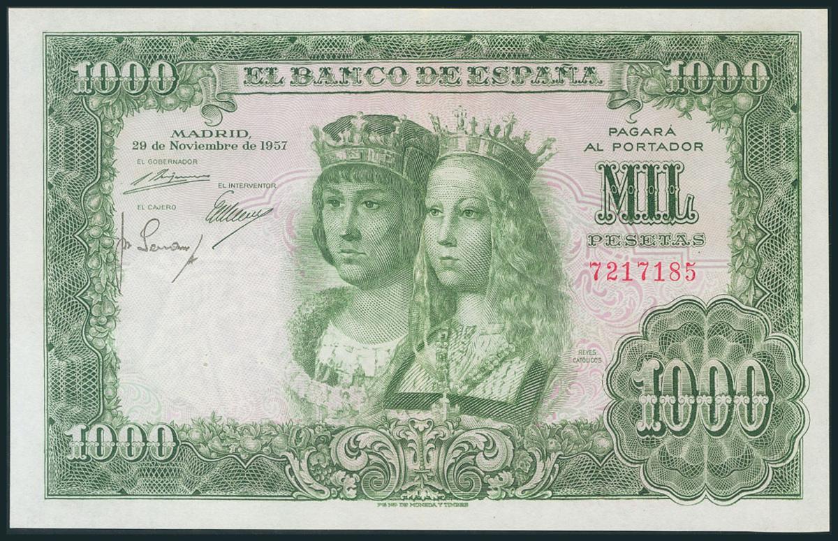 1000 Pesetas. 29 de Noviembre de 1957. Sin serie. (Edifil 2017: 469). EBC+.
