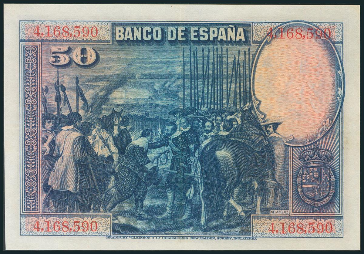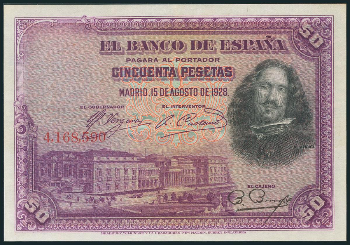 50 Pesetas. 15 de Agosto de 1928. Sin serie. (Edifil 2017: 329). EBC.