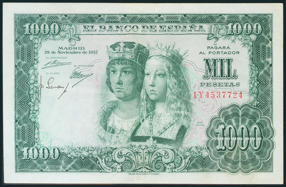 1000 Pesetas. 21 de Noviembre de 1957. Serie 1Y, última serie emitida. (Edifil 2017: 469b). EBC.