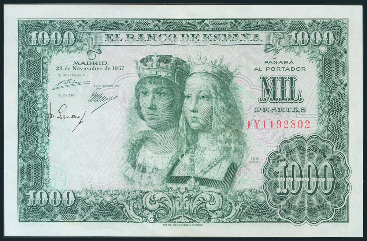 1000 Pesetas. 29 de Noviembre de 1957. Serie 1Y, última serie emitida. (Edifil 2017: 469b). EBC.