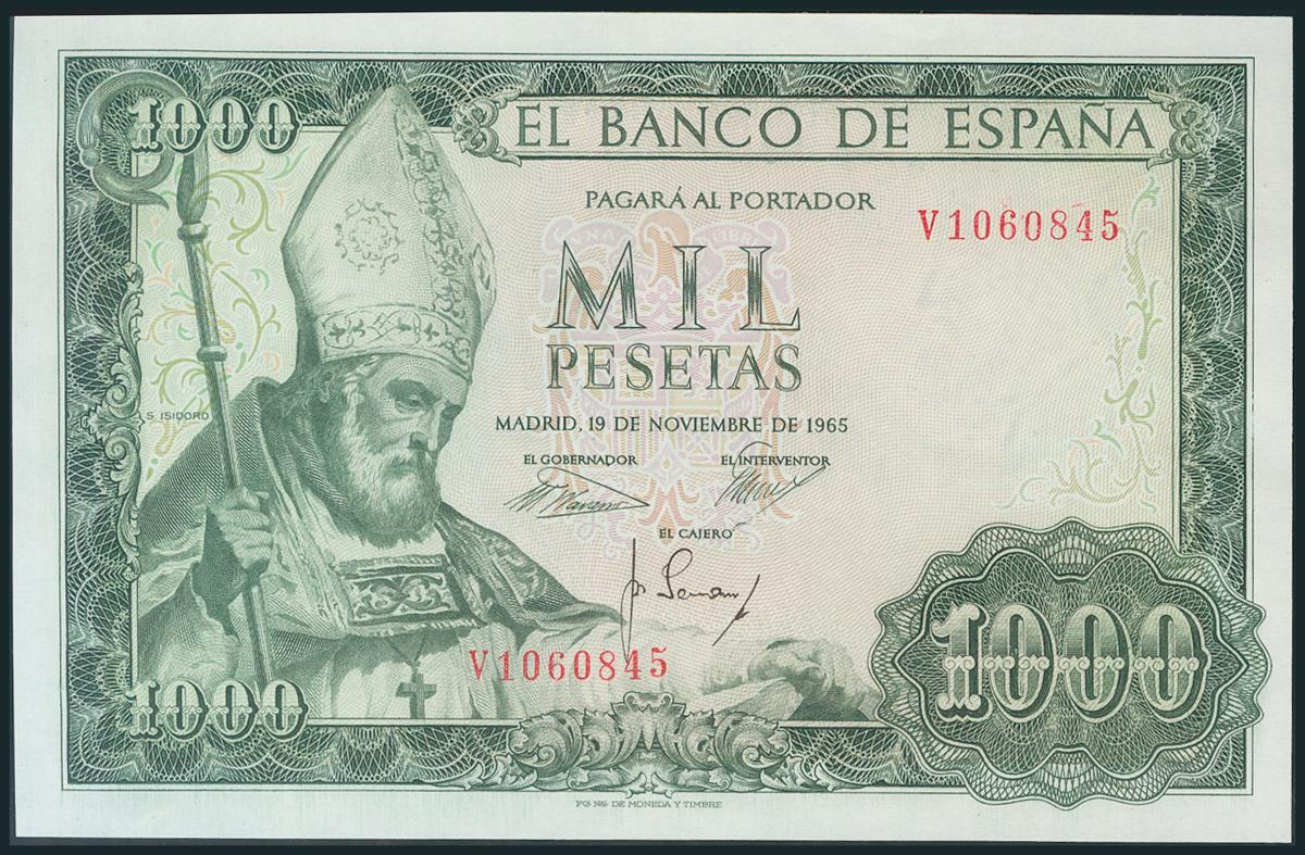 1000 Pesetas. 19 de Noviembre de 1965. Serie V. (Edifil 2017: 471b). Apresto original. SC.