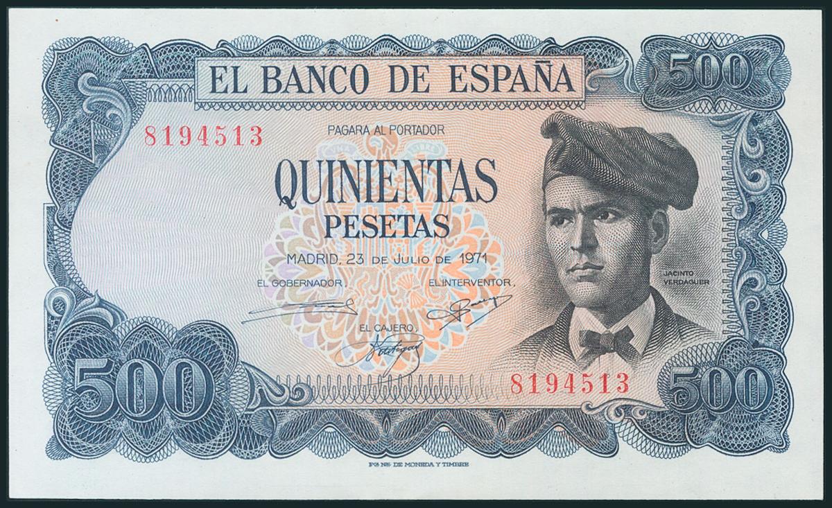 500 Pesetas. 23 de Julio de 1971. Sin serie. (Edifil 2017: 473). SC-.