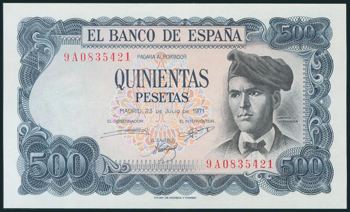 500 Pesetas. 23 de Julio de 1971. Serie especial 9A. (Edifil 2017: 473b). SC.
