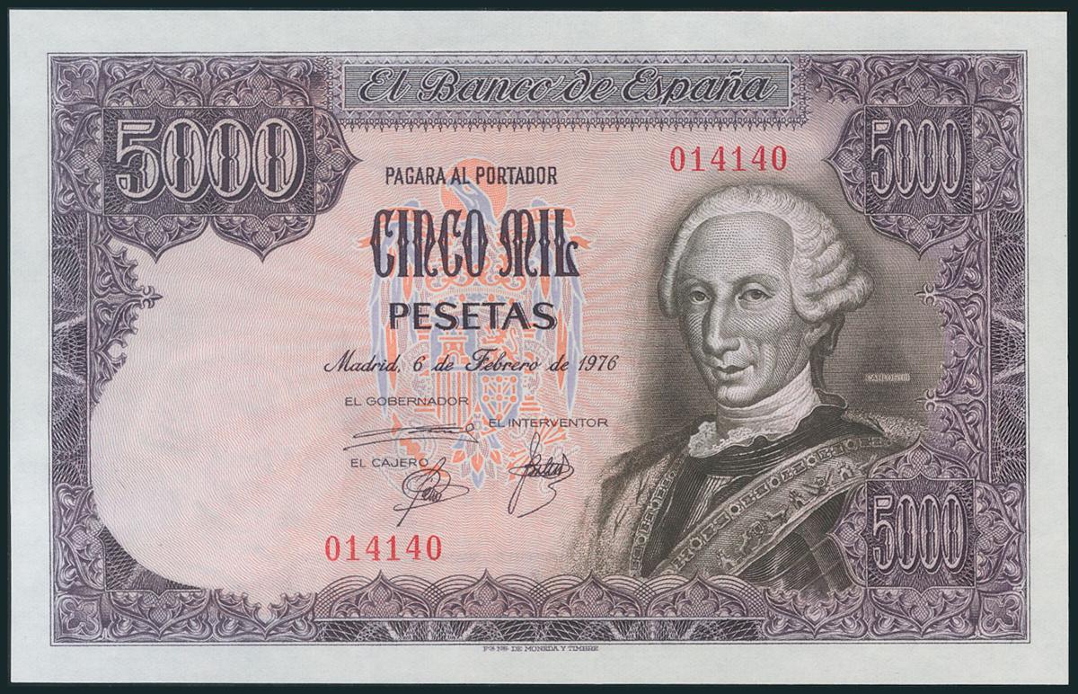 5000 Pesetas. 6 de Febrero de 1976. Sin serie. (Edifil 2017: 475). Apresto original. SC.