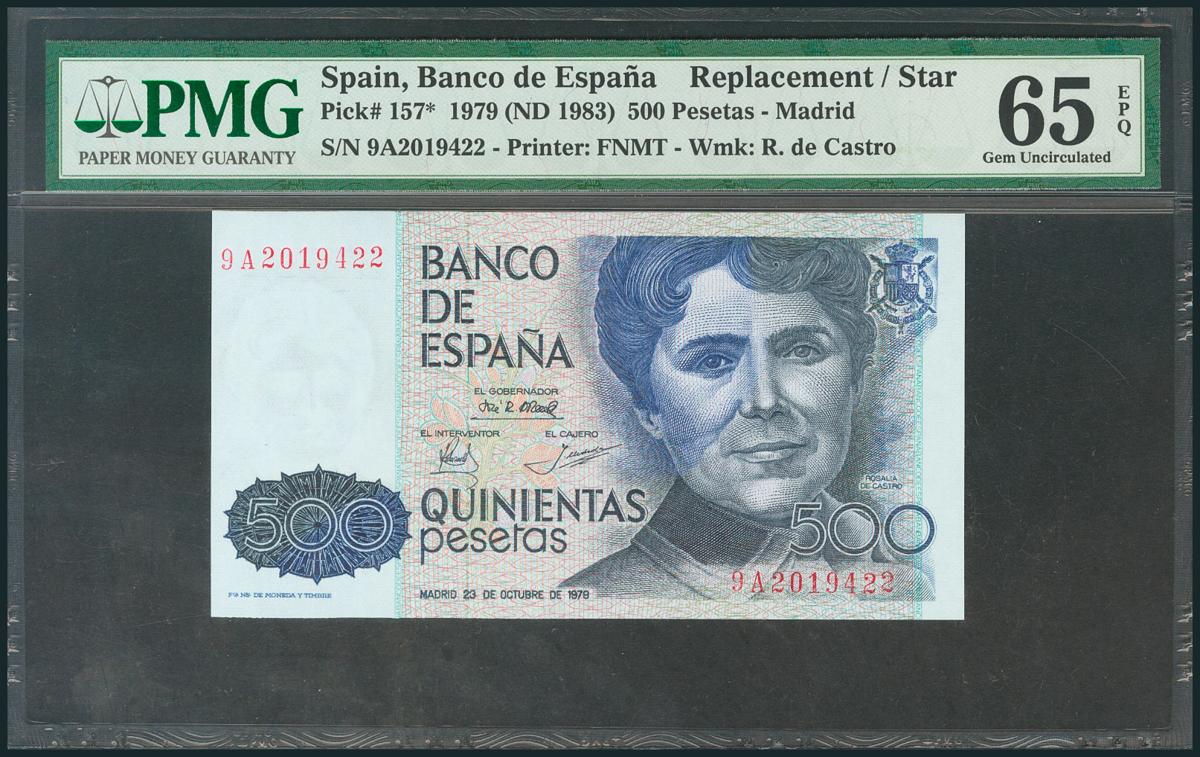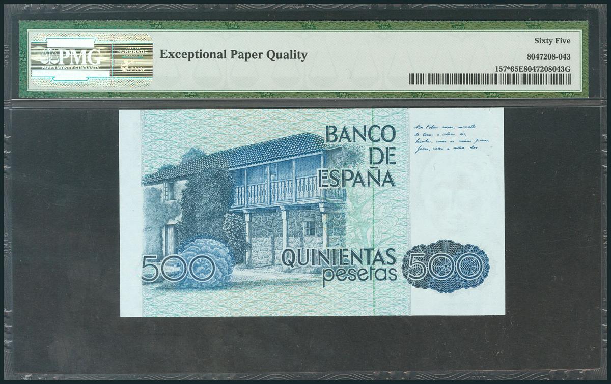 500 Pesetas. 23 de Octubre de 1979. Serie 9A, numeración especial. (Edifil 2017: 476b). Encapsulado PCGS65OPQ. SC.