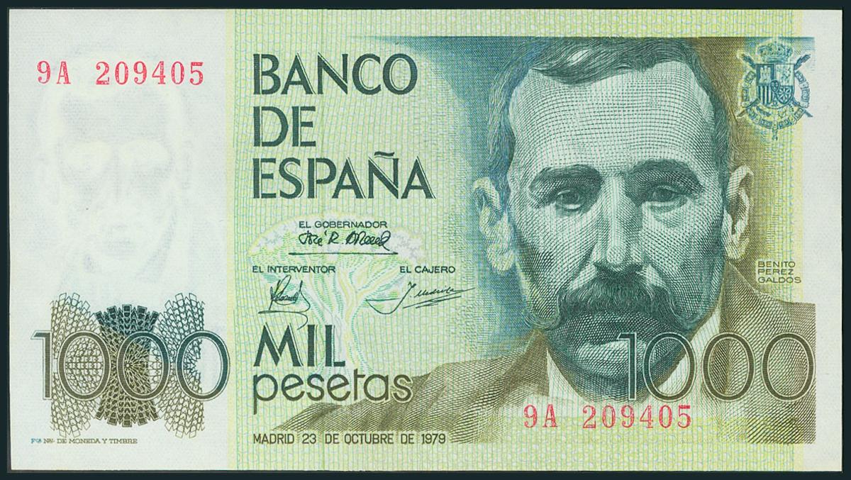 1000 Pesetas. 23 de Octubre de 1979. Serie 9A. (Edifil 2017: 477b). Apresto original. SC.