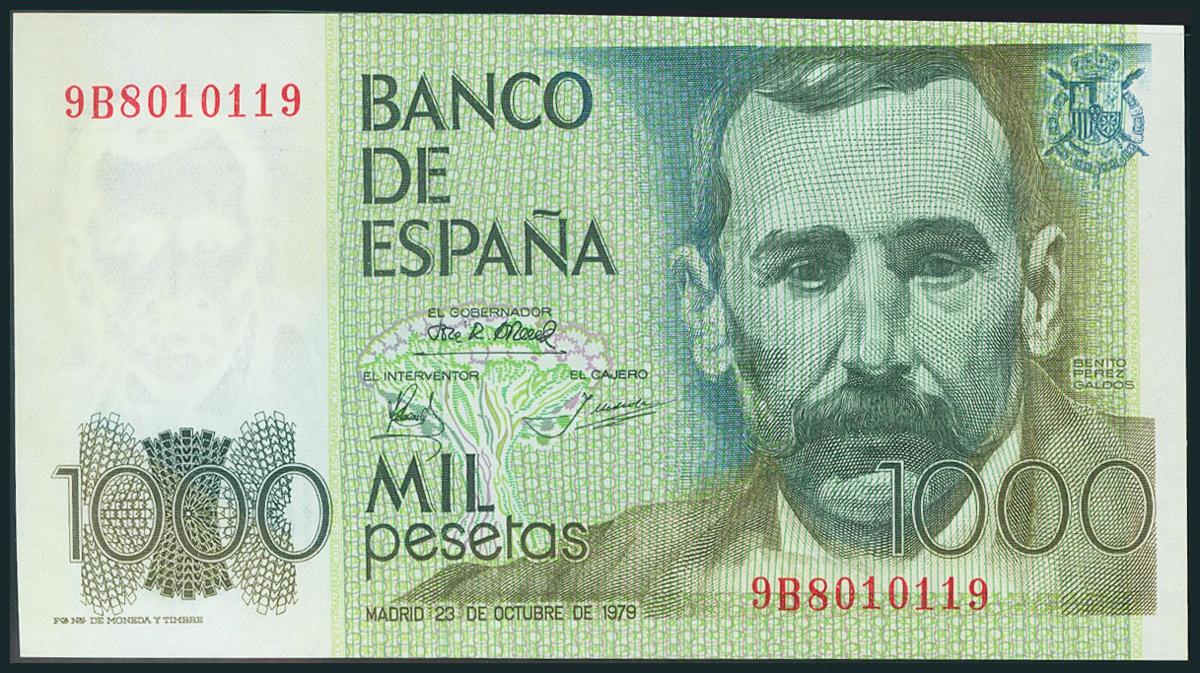 1000 Pesetas. 23 de Octubre de 1979. Serie 9B. (Edifil 2017: 477a). Apresto original. SC.