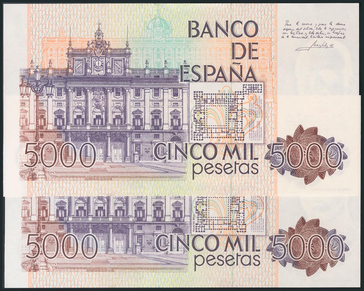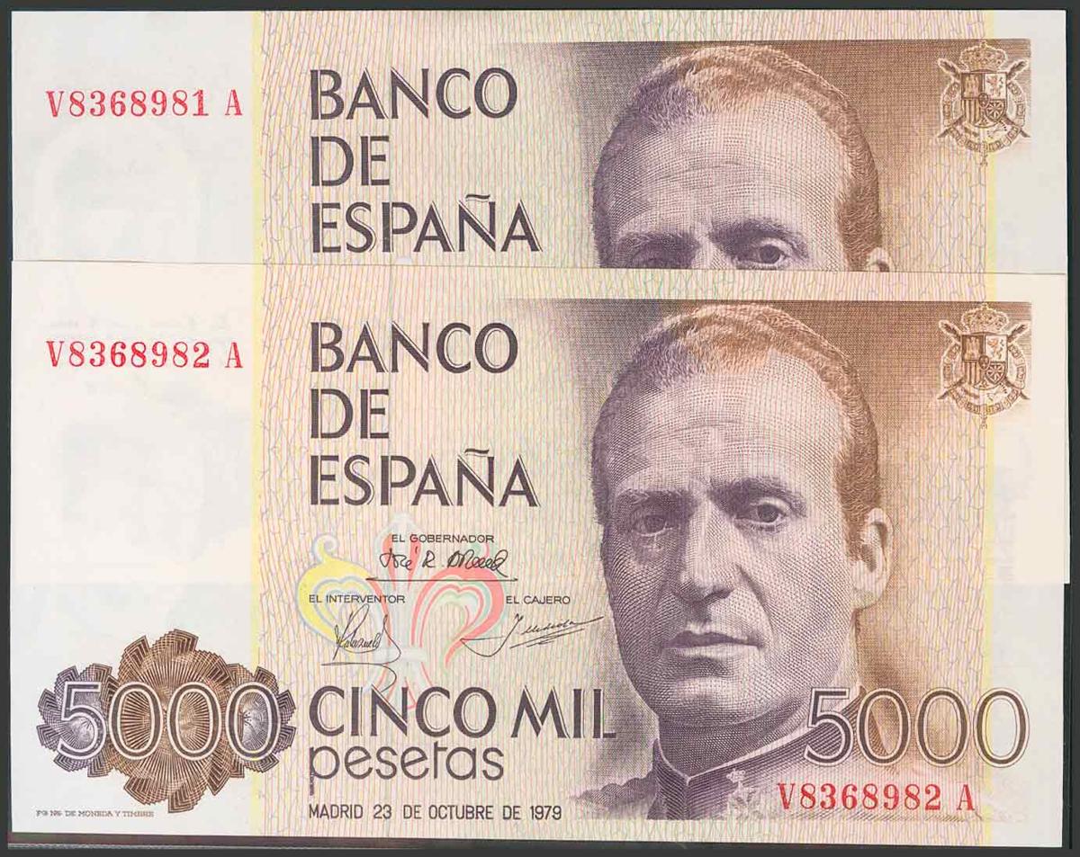 5000 Pesetas. 23 de Diciembre de 1979. Pareja correlativa. Serie V. (Edifil 2017: 478a). SC-.
