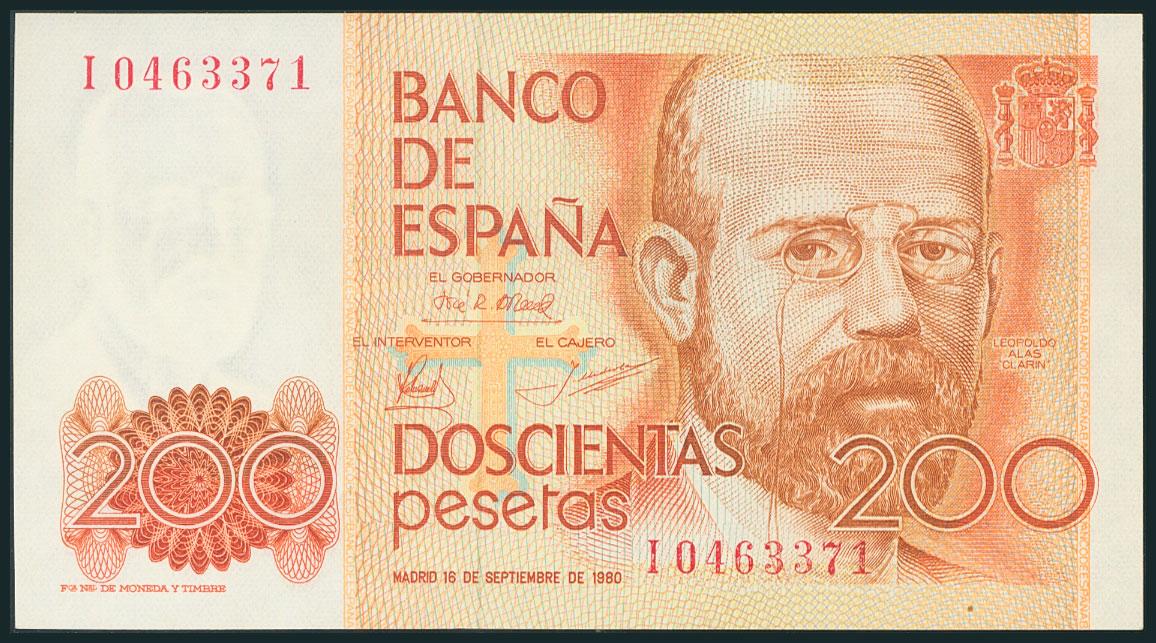 200 Pesetas. 16 de Septiembre de 1980. Serie I. (Edifil 2017: 480a). SC.