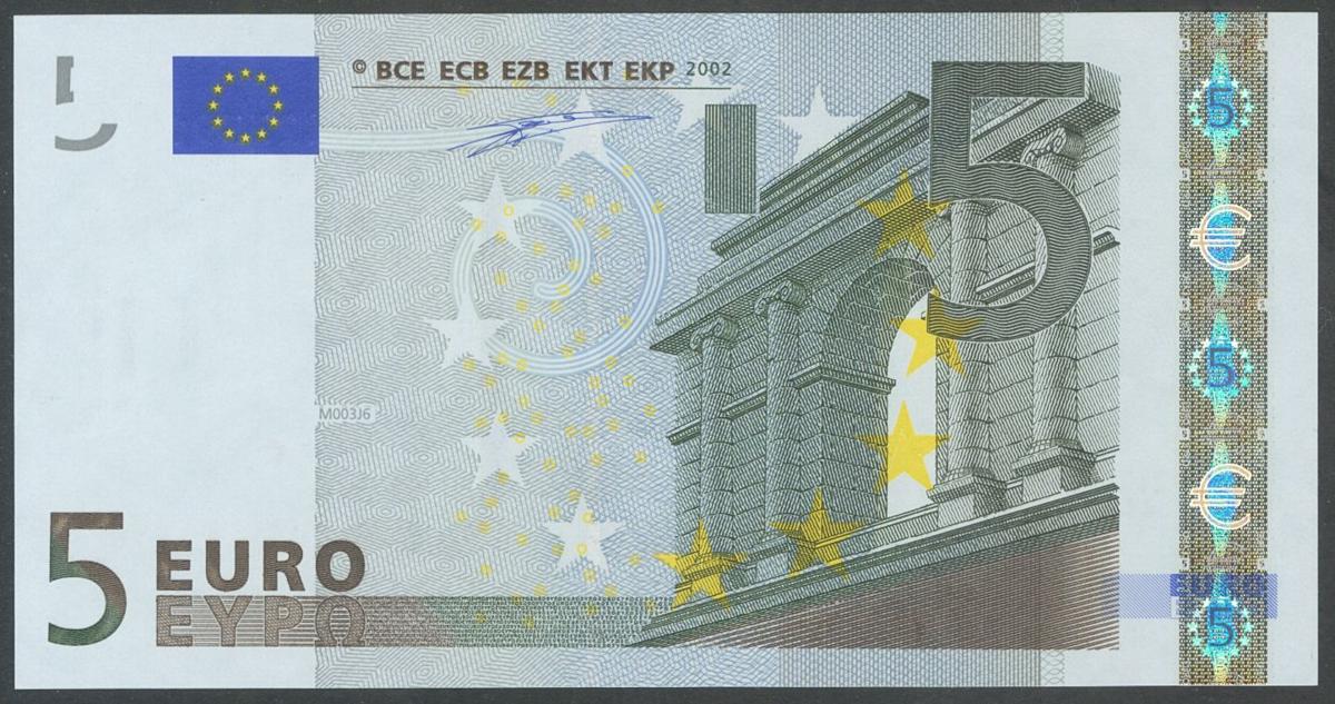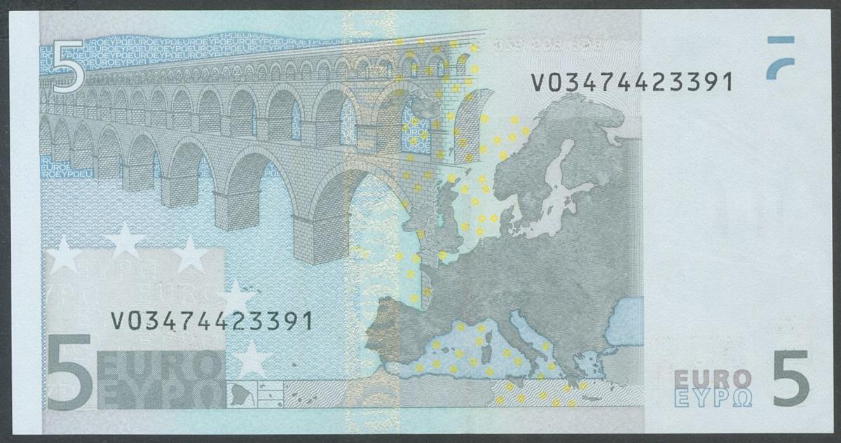 5 Euros. 1 de Enero de 2002. Firma Duisenberg. Serie V. (Edifil 2017: 486). SC.