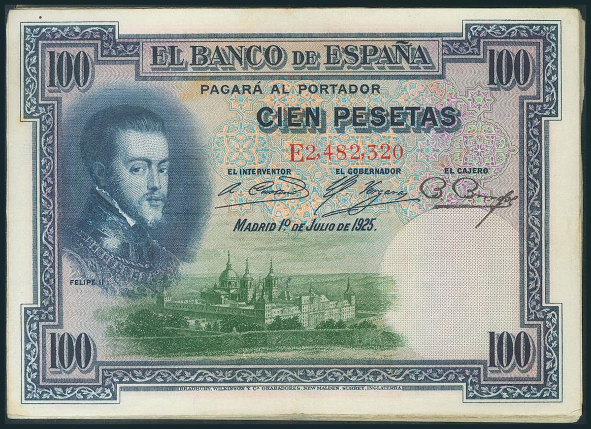 Conjunto de 24 billetes de 100 Pesetas emitidos el 1 de Julio de 1925 con diversas series y calidades diferentes (Edifil 2017: 350). EBC-/BC.