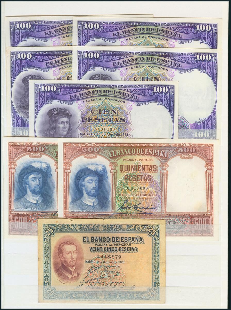 Conjunto de 11 billetes españoles de diversas calidades y series y emitidos en diferentes fechas. A EXAMINAR.