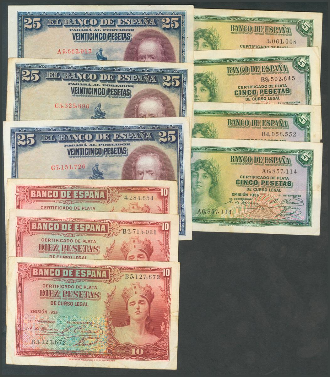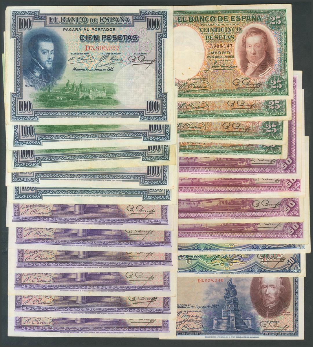 Conjunto de 34 billetes del Banco de España en diversas cantidades y calidades. A EXAMINAR.