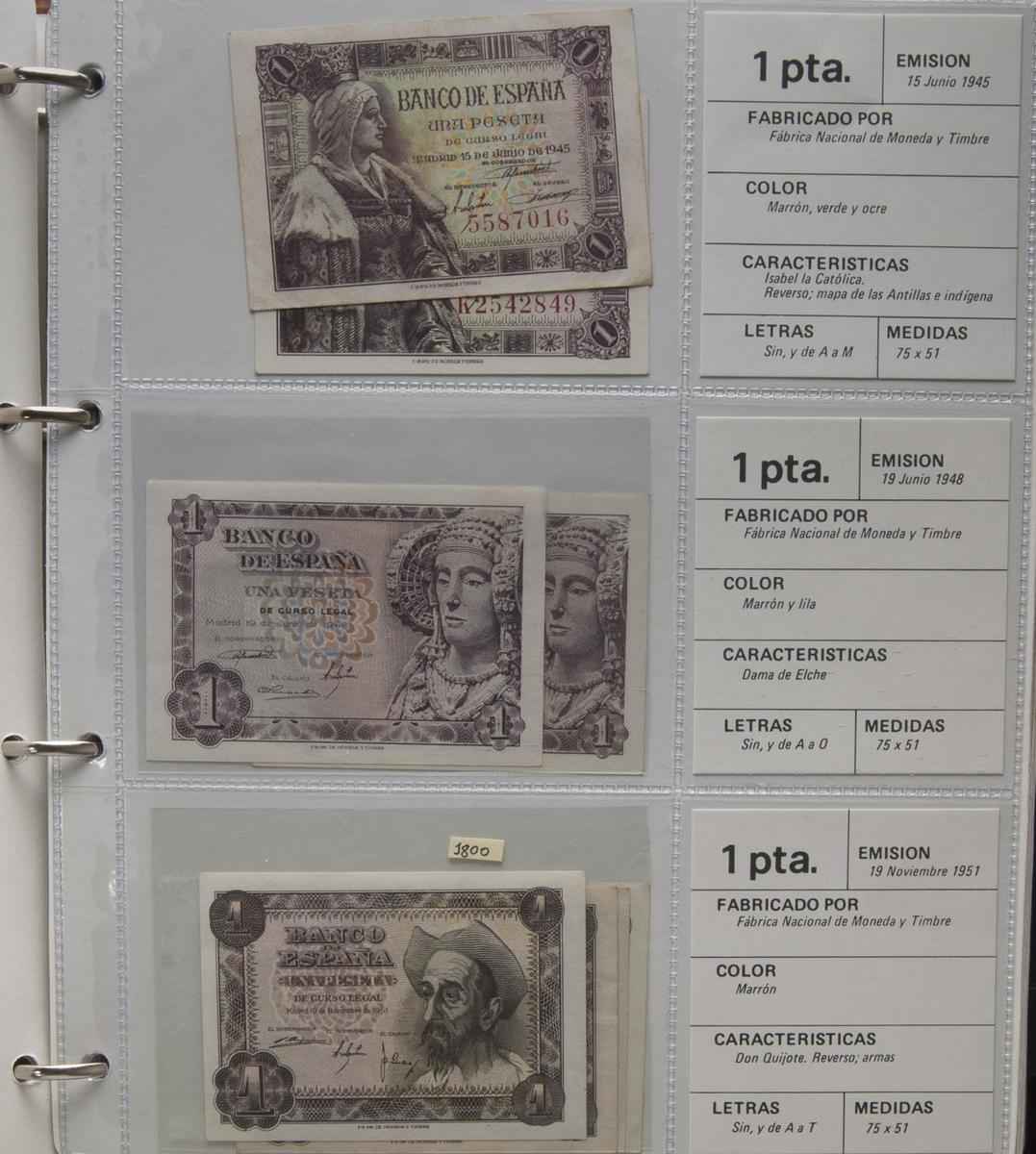 Precioso resto de colección de 64 billetes emitidos por el Banco de España en diferentes fechas y con diversas series y calidades, la mayoría muy aceptables. A EXAMINAR.