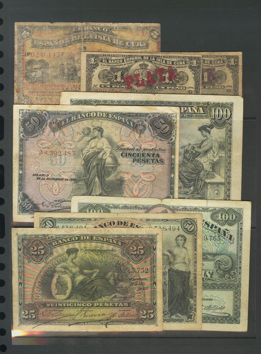 Conjunto de 25 billetes de España y Extranjero en diversas cantidades y series, con diferentes conservaciones. A EXAMINAR.