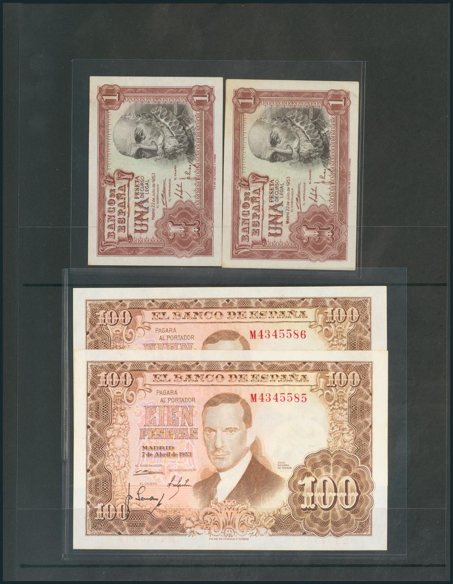Curioso conjunto de diversas parejas correlativas de billetes emitidos entre los años 1953 y 1970. A EXAMINAR.