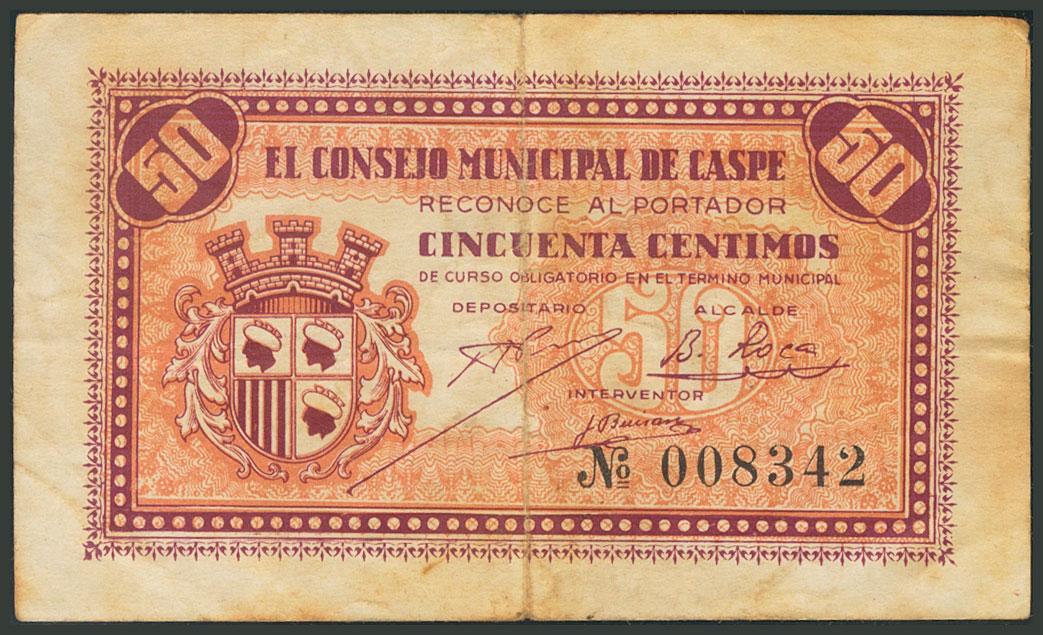 CASPE (ZARAGOZA). 50 Céntimos. (1938ca). (González: 1738). BC.
