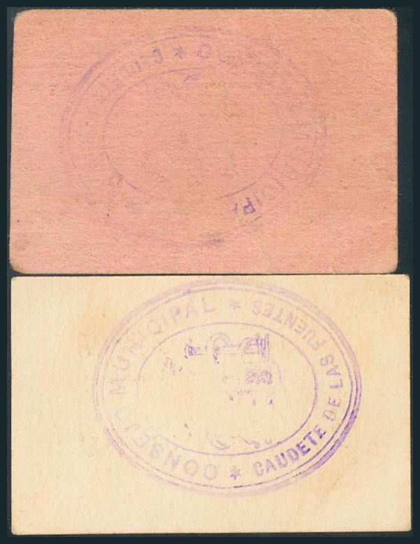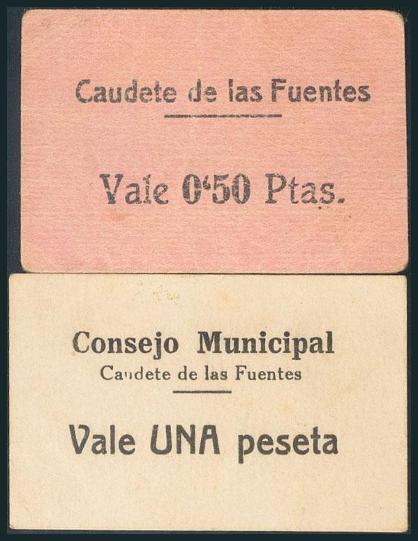 CAUDETE DE LAS FUENTES (VALENCIA). 50 Céntimos y 1 Peseta. (1938ca). (González: 1852/53). Raros. EBC+.