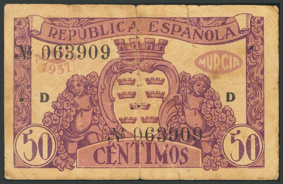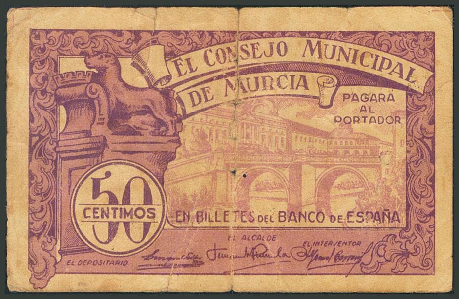 MURCIA. 50 Céntimos. (1938ca). Serie B. (González: 3772). RC.