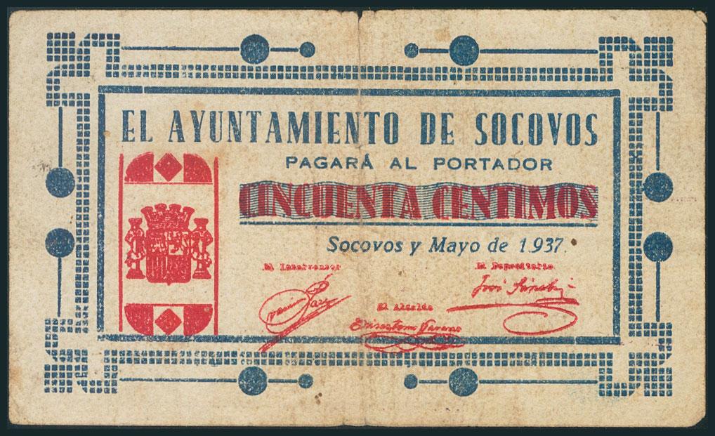 SOCOVOS (ALBACETE). 25 Céntimos. Mayo 1937. (González: 4880). Muy raro. MBC-.