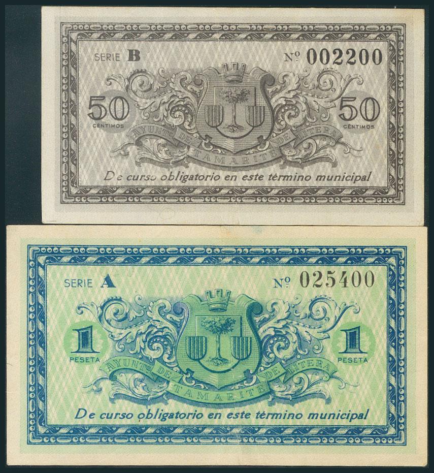 TAMARITE (HUESCA). 50 Céntimos y 1 Peseta. 10 de Octubre de 1937. Serie A y B, respectivamente. (González: 4973/74). EBC.