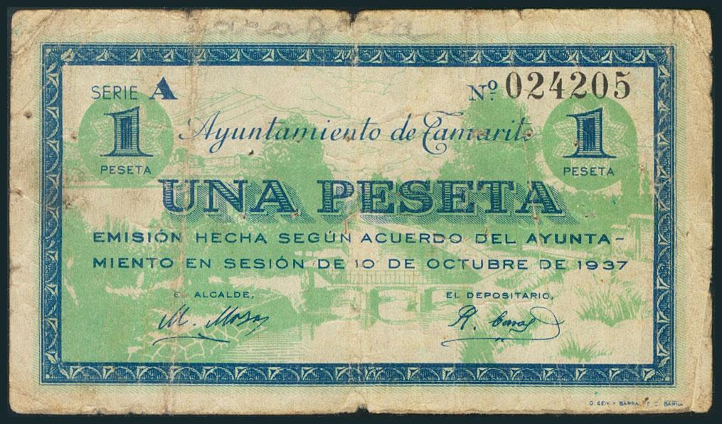 TAMARITE DE LITERA (HUESCA). 10 Céntimos. 10 de Octubre de 1937. Serie A. (González: 4974). RC.